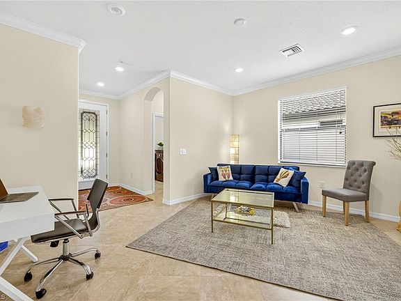 Enjoy peace and serenity on a quiet street in a quiet neighborhood within Arborwood Preserve. The resort-style amenities within this community will satisfy your recreational and social desires. An open floorpan and 1,904 square feet of air-conditioned living space gives you plenty of room whether you enjoy seasonal, or year-round living. The kitchen features stainless steel appliances, large island and a walk-in pantry. The master bedroom is spacious and features a large ensuite complete with a walk-in shower and two walk-in closets. The bonus room acts as a den/office and is perfect for working from home or can be used as a sitting or television room The upgraded LG front-load washer & dryer outfits a large laundry room with utility sink. The front sitting porch and the screened in back lanai make it easy to enjoy the outdoors. Plenty of room for a pool or expand your lanai. This home is NOT in a flood zone and has stayed high and dry for every storm it's ever endured. It has never lost power during any storm, so imagine the peace of mind you will have living here. You will rest easy while enjoying the best lifestyle possible in this SW Florida home. A whole-home wifi router and high speed fiber-optic internet service; up to 1gb speeds is available. Conveniently located in a tranquil neighborhood off of the Treeline Ave corridor, you will be in close proximity to RSW Airport, spring training ball parks, dining, shopping and entertainment. The town center has a resort style pool, bar/restaurant, complimentary coffee room, fitness center, yoga studio, card rooms theater and art studio. Lighted bocce ball, pickle ball and clay tennis courts will keep you active. Southwest Florida living at its best! Book your showing and see why this community is such a desirable place to live.