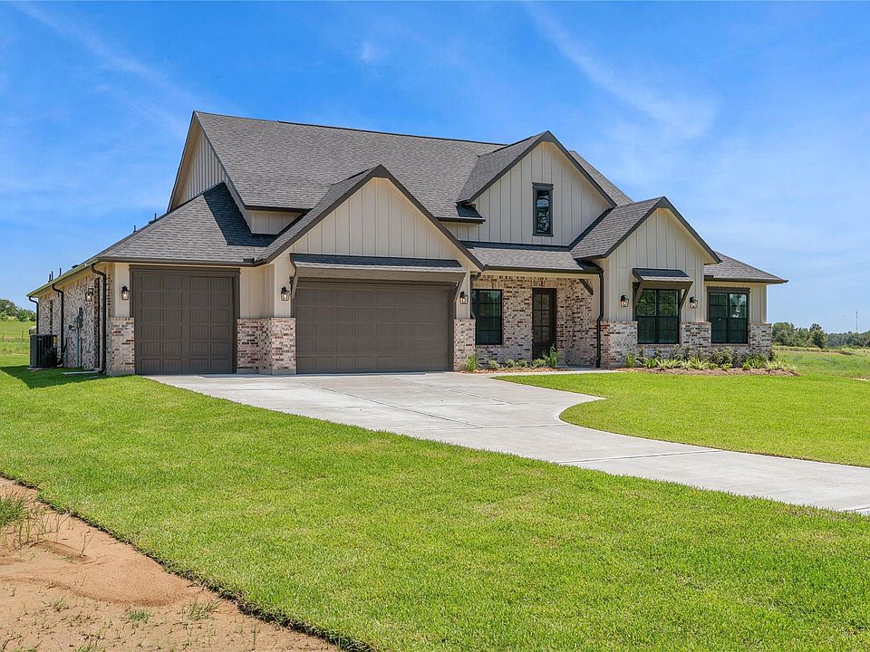 NEW CONSTRUCTION Our most popular floor plan, the 3369, in the Farmhouse elevation. This thoughtfully designed home features soaring 11-foot ceilings, four bedrooms, three and a half baths, a versatile flex room, an extended patio option, and a workshop area in the spacious three-car garage. The open-concept layout seamlessly connects the living area, kitchen, and casual dining space, creating an ideal setting for everyday living and entertaining. At the same time, privacy is prioritized with the secondary bedrooms located on the opposite side of the home from the luxurious primary suite. The primary suite includes a beautifully appointed bath and dual walk-in closets with convenient access to the laundry room. Designed for both comfort and style, this floor plan is perfect for gatherings. This home truly has it all! Photos shown are representative, actual design selections will vary.