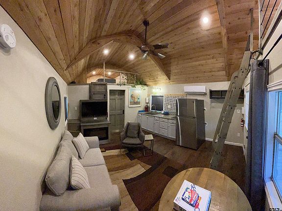 - Included: Microwave, Refrigerator, Electric Cooktop, Tankless Electric Water Heater