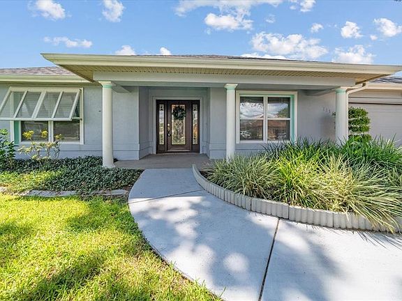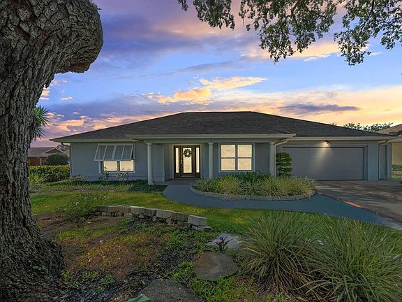 One or more photo(s) has been virtually staged. Beautifully maintained block and stucco home with 1,700 sq ft in the 55+ gated community of Stonecrest, convenient golf cart ride to The Villages, shopping, and medical. Recently PAINTED (2025) inside and out, this well cared for home sits on a shaded CORNER LOT lot with a majestic oak trees, complete with beautiful flowers and garden beds to enjoy. HIGH CEILINGS, openness throughout, and tile and WATER PROOF LUXURY VINYL PLANK flooring will greet you as you enter the home. Updates include a newer roof, upgraded windows, garage door (2019), and appliances (2020). The kitchen features updated cabinets, a tasteful backsplash, a HURRICAN-RATED SKYLIGHT that fills the space with light, and overlooks a serene garden retreat. The versatile OFFICE/CRAFT ROOM offers abundant cabinetry plus 2 closets. The dining room is complete with a BAY WINDOW, and there are 5 UPGRADED FANS/ LIGHTS throughout the home. Both bedrooms have en-suite baths; the primary includes a walk-in and linen closet. Enjoy the enclosed SUN ROOM with heating/cooling, a screened patio with a large ELECTRIC AWNING (2020), and a separate cooled golf cart garage/workshop with storage and the ATTIC offers a fan and additional storage. Wired for a generator and complete with a WATER FILTRATION SYSTEM—this home blends comfort, upgrades, and peace of mind. ROOF December, 2023, HW 2023, HVAC 2007. Start enjoying the pools, dances, clubs, pickleball, and amenities this neighborhood has to offer! SELLER OFFERING $10,000 ALLOWANCE TOWARD ANY PERSONAL TOUCHES OF CHOICE! Schedule your tour today!