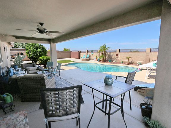 Desert Oasis with Pool & RV Parking in Mesa Del Sol Welcome to Estrella at Mesa Del Sol! This beautifully maintained 4-bedroom, 3-bath home offers 1,642 sq. ft. of stylish comfort on an 8,360 sq. ft. lot — complete with a sparkling in-ground pool, 3-car garage, and RV access with hook-ups. Step inside to an inviting open floor plan featuring vaulted ceilings, tile flooring, and plenty of natural light. The kitchen is a dream for home chefs with granite countertops, an island with breakfast bar, gas range, and pantry storage. The split floorplan provides privacy, with a spacious primary suite that includes a walk-in closet and dual vanities. Outside, relax or entertain under the covered patio overlooking your private backyard retreat — fully fenced with auto watering, a double gate, and desert landscaping. Additional highlights include: • Water softener and reverse osmosis system • Security system and smoke detectors • Energy-efficient refrigerated A/C • Move-in ready and VA/FHA friendly Enjoy resort-style living near Mesa Del Sol Golf Club and Yuma’s east-side conveniences — all in a quiet, well-kept neighborhood with paved streets, curbs, and sidewalks.