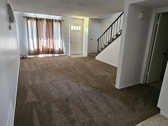Two story apartment duplex with central heat and wall air conditioning, 2 bedrooms and 1.5 bathroom upstairs, new paint and carpet, laundry hookups in the kitchen and a shared yard with a 1 car garage. Available now for move in!