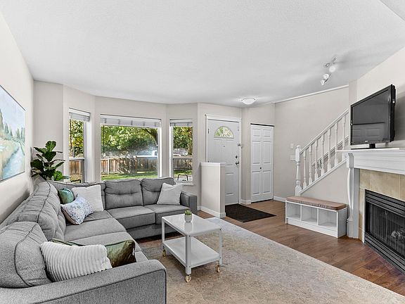 This spacious END UNIT townhouse offers over 1,300 square feet across just two levels, giving it a wider, more expansive floor plan than most. With only one neighbour, it provides both privacy and quiet. The updated kitchen features newer cabinets, modern fixtures, and newer appliances, while the completely redone bathroom showcases a beautiful soaker tub with a stylish tile surround. Hardwood floors flow through the main level, anchored by a cozy gas fireplace, and the laundry room is so generously sized it could easily serve as a 4th bedroom. All 3 bedrooms are impressively large, and the main floor opens seamlessly to a level yard, extending the living space outdoors. Bonuses: Side-by-side washer/dryer, new hot water tank, and extra parking throughout complex. 1st Open House Sun 1–3 pm.