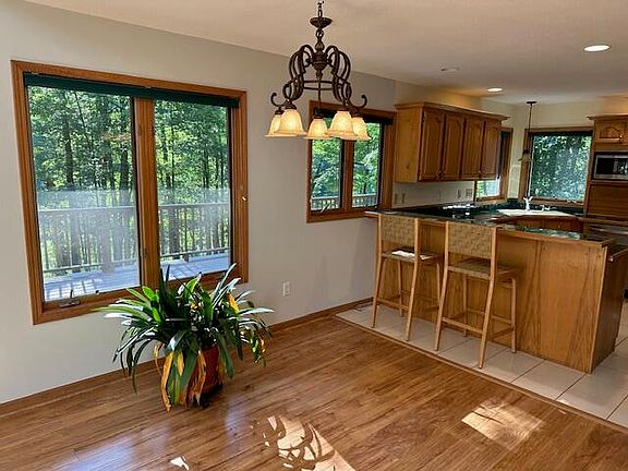 Nature Preserve Setting (See Photos) great view overlooking frontage on Browns Pond great for fishing, kayak, or canoeing. Partially high deer fencing in backyard ideal for your pups and keeping the many flowering bushes and plants intact for your enjoyment. Stand on your full length deck across back of house to enjoy the view. Both upper & lower decks just replace. Three bedroom two & half baths. New carpet & fresh paint. Open Living room dining area, and kitchen vaulted ceiling and all the appliances. Lower level family room / recreation in full walkout basement. Whole house air conditioning added in 2022. Large attached two car garage. Private off road setting close to the White River. Whitehall Schools.