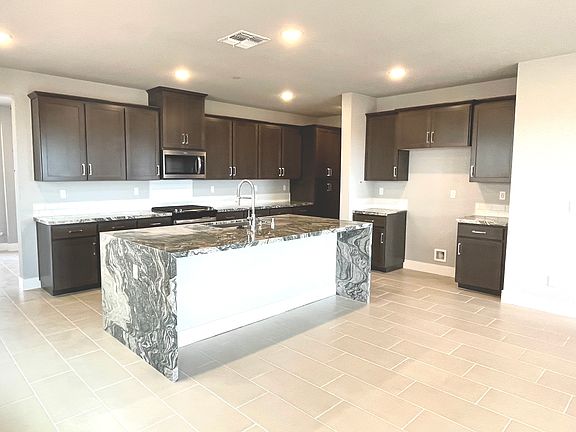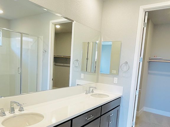 As the only two-story option in Sutter at Rio Del Oro, Plan 2353 has plenty of room for the whole family to thrive under one roof. Enter the home through the sizable covered porch or the two-car garage to find a perfectly-placed bathroom and entryway that leads you into the main living area. The gourmet kitchen features a massive island for optimal seating and counter space, as well as double pantries to ensure that you'll never run out of room to store food for the entire family. The laundry room is placed just off the side of the kitchen, where you'll find a convenient utility sink and more than enough space for a large washer and dryer to fit against the wall. Past the kitchen is the light-filled casual dining area, combined with the huge great room big enough for any visitors, friends and the whole family to come together?emphasizing an open-concept space while maintaining a close-knit feel in this unified area of the home. The covered patio can be accessed through the great room, which has substantial capacity for everyone to enjoy a combination of indoor and outdoor living in this incredible home. To the left of the living area is the thoughtfully-designed master bedroom, accompanied by enough square footage for a king-sized bed and more. A modern sliding barn door leads you into the master bathroom, where you're welcomed by an elongated dual-sink vanity across from the spacious walk-in shower. The enormous walk-in closet is placed past the bathroom, with more than eno