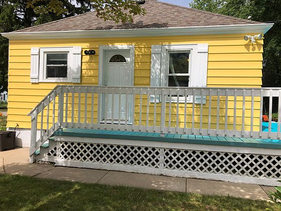 This home was a two-bedroom which I made into a one-bedroom and now a dining room with patio doors to a wrap-around deck. It can easily be made back into a two-bedroom. Since I have bought the home in 2002 I have put on a new roof on house and garages, replaced the windows, insulated sidewall and attic. Painted inside and basement, also the outside. In 2016 a new furnace was put in. Attic has a floor and some shelving. Wood flooring in the living room and bedroom and dining room. A lot of shelving in the kitchen, and basement. The garage has pull-down steps to the attic which has floor and finished walls and shelving. Kitchen and dining room are open. Partial fencing on the side and back yard. I used one garage as a workshop which has a lot of cabinets. Low utilities and taxes. Quiet neighborhood.