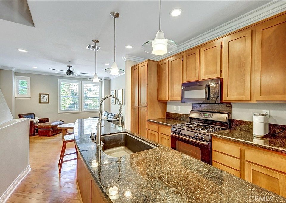 At approximately 1,480 sq ft, this immaculate tri-level townhome delivers easy living, with the park, the iconic San Elijo fountain, shopping, coffee, and dining just across the street. The entry level features garage access, front access, plus a flexible den/office that can be used as a third bedroom, with a charming brick accent wall that adds warmth and character.
