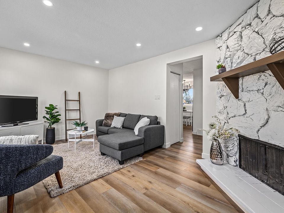 Welcome home to this beautifully renovated end-unit townhouse! From the brand new kitchen to the fully finished basement, no detail has been overlooked. The spacious living room features a wood-burning fireplace and opens to a freshly sodded yard, perfect for relaxing or entertaining. The main floor is completed by a convenient 2-piece bath. Upstairs offers 3 bedrooms, including a generous primary suite with great closet space, along with a brand new 4-piece bathroom. The finished basement provides additional living space, ideal for guests or recreation. Upgrades include: quartz countertops, new vinyl plank flooring, doors, trim, pot lights, updated lighting and hardware, plush carpet, and fresh paint. Fantastic location close to amenities, with school and playground steps away, and easy access to the Anthony Henday and Yellowhead Trail.
