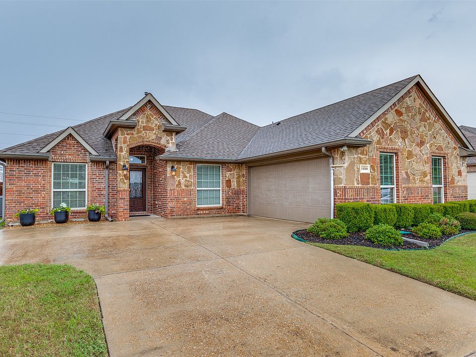 Immaculate freshly painted new home in Fox Hollow! Floorplan is open & flexible-4 bedrooms, 2 full baths & room that can function as home office or dining area. Well-equipped Kitchen with stainless steel appliances including gas cooktop & refrigerator. Oversized living has corner fireplace with gas logs & wall of windows. When you step outside you will love the wonderful outdoor covered entertaining space complete with extended patio, mount for TV to watch big game & party lights for when the sun goes down plus large trees & space for family games or even a pool! Primary suite is in the back of house with private bath & garden tub, separate shower & huge walk-in closet. 3 other bedrooms are near the 2nd bath, 2 include the same wood floors in much of the house & can function as guest or children's bedrooms or 2nd office if that's on your list. Fox Hollow is conveniently located & has low $275 HOA that includes pool, playgrounds, ponds & walking trails. Roof replaced June 2024.