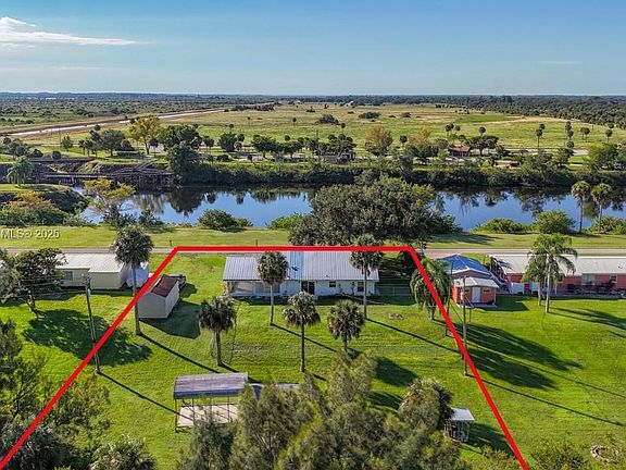 AFFORDABLE RIVERFRONT CHARMER – RETREAT OR RETIRE! CHANGE YOUR LIFESTYLE AND YOUR LIFE IN THIS TRANQUIL SCENIC SETTING! Nestled in rural Glades County on the Caloosahatchee River, part of the Intracoastal Waterway, connecting the Gulf of Mexico to the Atlantic Ocean. Enjoy panoramic water views, all types of boats traversing the locks for adventures from your spacious screened lanai overlooking the action! Fishing enthusiasts will love the free public boat ramp a short distance from your home. Fully renovated home is concrete block with a durable galvalume metal roof and boast double sliders front and back to blend the convenience of inside living with nature outside your door.