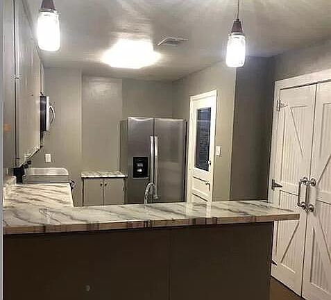 A classic ranch-style home with three bedrooms and two bathrooms is characterized by its single story design, long and low profile, and a simple yet functional layout.Following the installation of a new roof after the hurricane, the home boasts a fresh and secure covering, providing both aesthetic appeal and structural integrity.Inside, the layout is designed for convenience and easy accessibility, featuring unique barn doors throughout the home.The three bedrooms offer ample living space, providing privacy and comfort. Another appealing aspect of this home is its large back yard. The spacious outdoor area provides for various activities, such as gardening, entertaining, or simply enjoying the open space. A MUST SEE!! Seller will pay $5,000. in closing costs!!!!