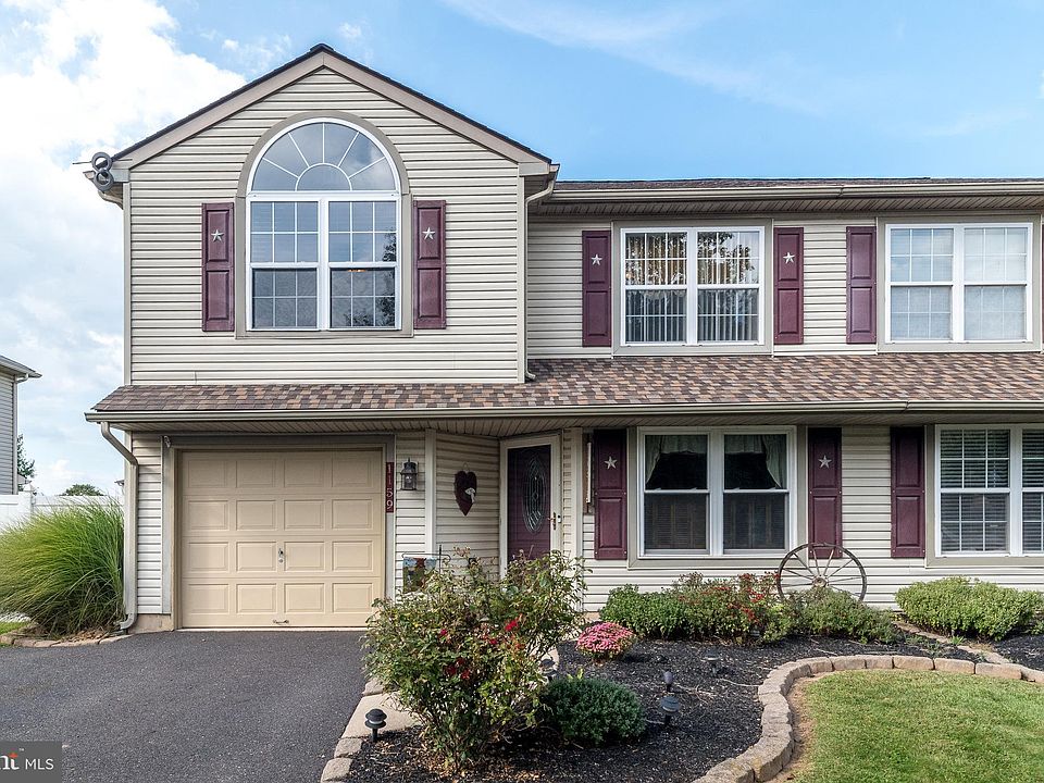 IMMACULATE TWIN home offering 1,429 sq. ft. of comfortable living space! This move-in-ready property features a large fenced backyard with a spacious storage shed, an expanded driveway, and a one-car garage with inside access. Bright palladium windows fill the home with natural light, while freshly painted interiors and LVP flooring on the first floor and plush wall to wall carpet on the second floor create a modern touch. The updated kitchen with breakfast area opens to a fabulous deck through double glass doors—perfect for summer entertaining. Upstairs, the expansive primary suite boasts a cathedral ceiling, walk-in closet, and linen closet. Two additional bedrooms, a convenient second-floor washer and dryer, and plenty of storage with ample closets and pull-down attic access complete the upper level. Set on the edge of the neighborhood, this home is ideally located near the rail trail, parks, and downtown conveniences.