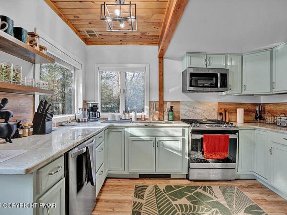 Welcome to this 4-bedroom, 2-bathroom home in the short-term rental-friendly community of Stillwater Lake Estates! Step inside to find an updated kitchen featuring stainless steel appliances and modern countertops, perfect for cooking and entertaining. Sunlight fills the home, creating a warm and inviting atmosphere. The exposed beam and wood ceilings throughout add rustic charm with a modern touch. Enjoy outdoor living on the spacious deck, ideal for relaxation or gatherings-while the secluded yard with a cozy fire pit offers the perfect place to unwind. Located in an amenity-filled community with beaches, lake access, and a pool, this property is a true Pocono retreat. Schedule your showing today!