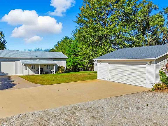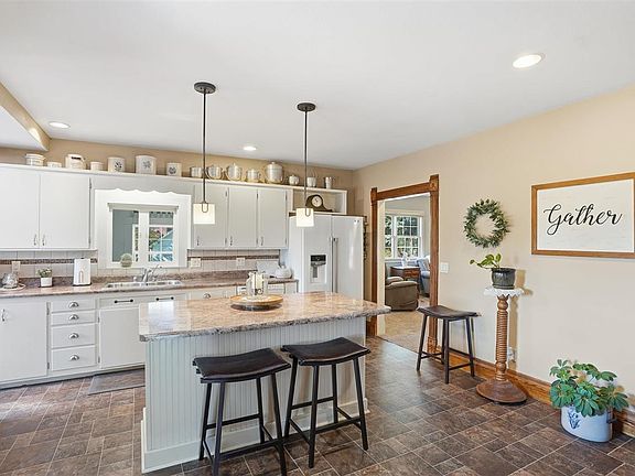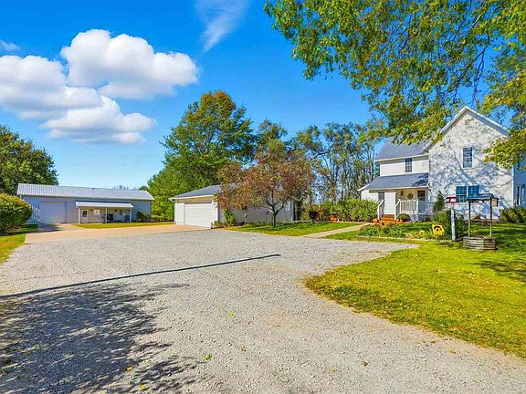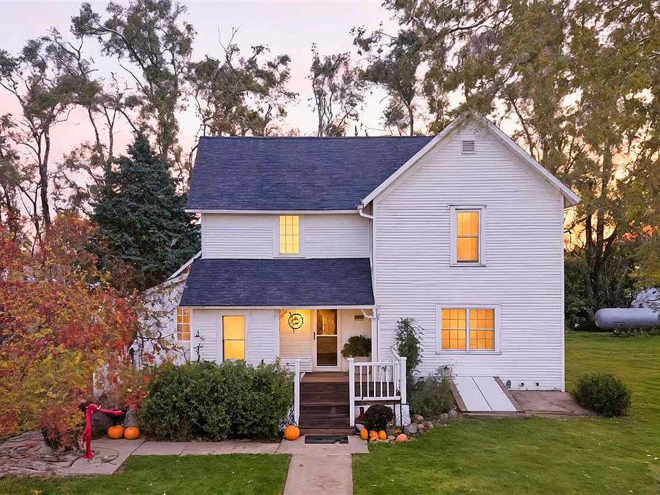 Tucked away on the edge of Riverside, this rarely found 2.28-acre hidden gem (no gravel) offers a serene private setting with mature trees, large garden area, rows of pines, & small pasture. Enjoy peaceful mornings on the deck overlooking a pond & church steeple. This 2-story home exudes classic farmhouse warmth, featuring a spacious kitchen with abundant cabinetry & custom island with breakfast bar. Cozy living room offers a gas fp & backyard views, while the formal dining highlights gleaming original HW fls & a stunning chandelier. A 1st fl office or bedroom & separate full bathroom with jet tub complete the main level. Two generous sized upper-level bedrooms with beautiful HW fls, plus an updated bathroom with Swanstone sink/counter, walk-in shower, & dedicated makeup area. In-floor heating in kitchen & upper bathroom, & the home’s energy-efficient boiler system was enhanced in 2017 with a Space Pak central air system. Many updates throughout include mostly newer drywall, 200-amp electrical, plumbing updates, new pressure tank 2022, & buried electrical lines. LL includes laundry with sink, full bathroom, & ample unfin space perfect for future family / rec room. Several outbuildings provide flexibility — a 2.5 car det garage, a heated 30x54 shop with 10-ft overhead door, 8-ft & 12-ft sliding doors, plus 2 addit’l outbuildings.