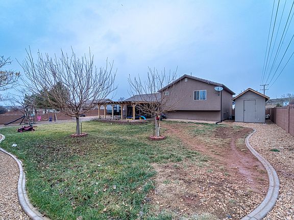 Spacious 5 bedroom 3 bathroom Hurricane home sits on a spacious 0.28-acre lot and features a massive covered rear patio and a very large back yard, a large RV gate, storage Shed with power and AC. RV parking with power hook-up.
