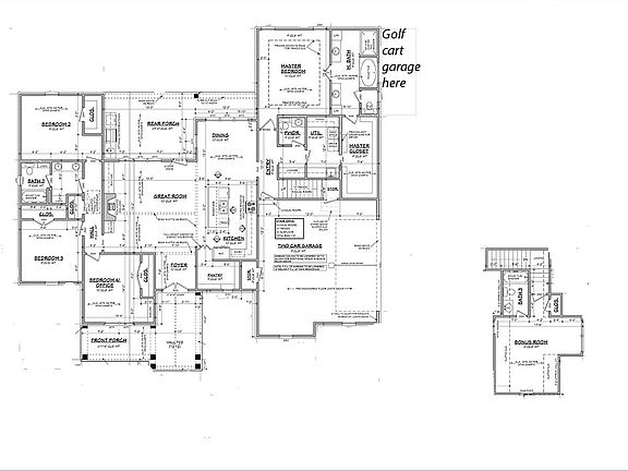 Perfectly sized with every upscale finish, this new home overlooks the #1 and #9 holes with sweeping golf course views. Stone accents highlight both the front elevation and the rear screened porch—already stubbed for an outdoor kitchen and sink. A true split ranch design, it offers 4 bedrooms and 3.5 baths on the main level plus an additional bath in the upstairs flex/bonus suite. Inside, enjoy a chef’s kitchen with a commercial-style gas range, microwave drawer, and tankless gas water heater. The oversized two-car garage (with epoxy flooring) includes an adjacent golf cart bay and electric car charging outlet. The primary suite features a freestanding soaking tub, separate shower, dual vanities, and a huge custom closet with direct access to the laundry and mudroom. Built expertly by Coldwater Homes and nearing completion for a quick move in so you can enjoy all the amenities Harbor Club has to offer – golf, lake, pool, clubhouse, Marina, pickleball, social activities and so much more!