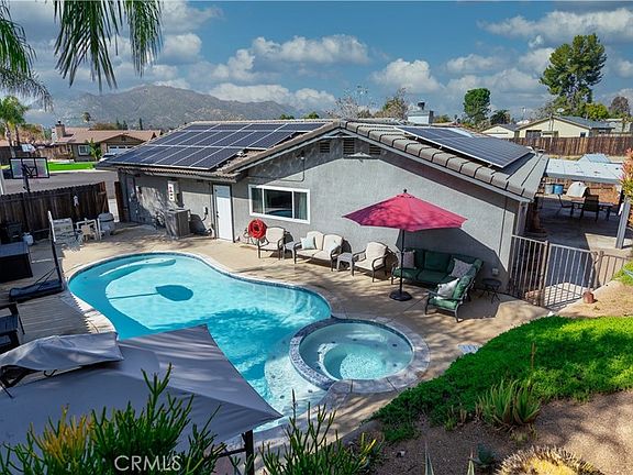 Rare Single Story Pool Home on a Cul-De-Sac. This home has it all. Quiet neighborhood located close to shopping, great schools and freeway access. This open floor plan has been upgraded throughout in the last 7 years with new windows, A/C, pool filter and pump. Recently owners have repainted the entire home and ceilings to include installing new baseboards in main living space. They have added new custom lighting, remodeled the kitchen and bathrooms, and all bedrooms have new closet doors with master receiving new gorgeous custom barn doors. The living room includes vaulted ceiling with a large natural skylight and gas and wood burning fireplace with custom mantel and brick finish. Kitchen has all stainless steel appliances with corian countertops, recessed and custom lighting and a large eating area. Guest bathroom includes tub and shower combo with corian countertops and tile flooring. All 3 guest bedrooms have custom lighting, 2 with ceiling fans, new paint and tile flooring. The master bedroom and bathroom is a large open and bright combo with tile flooring, custom barn doors, tub and shower combo, and custom lighting. Outside you will find a large pool and spa that has recently been re-plastered and has had all new tile replaced to include a large backyard with plenty of space to entertain with a large private patio, fire-pit area, storage sheds, and custom pavers. There is lots of room for extra parking and a large 2 car garage with extra storage space. The home also has solar! Panels cover everything you need to run A/C in summer and pool and spa with no extra electricity bill. This home is a must see.