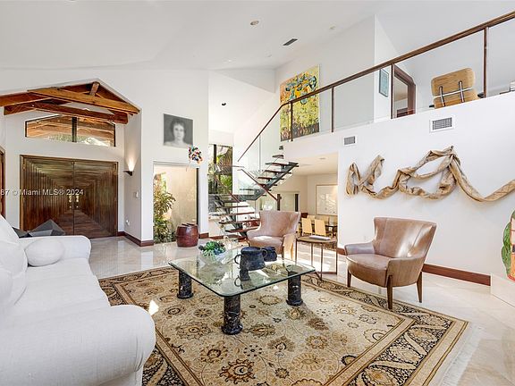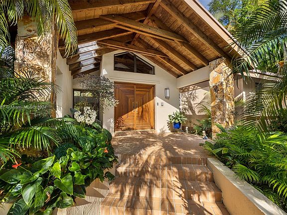 Family pool home on 33,977 sf lot with stunning tropical landscaping. Post modern style characterized by repeated geometric shapes, sustainable natural elements, and large expansive windows, creating visually open and stunning sanctuaries. Split plan 5BD, 4bathrooms, den/family room, maid’s quarters, 2 car garage, and a detached permitted air-conditioned office. Large private primary suite with its own den, roof deck, and a spacious en suite bathroom. Newly resurfaced pool and Jacuzzi surrounded by covered brick patio, and sunning area, perfect for lazy days at home, or indoor/outdoor entertainment. Impact windows throughout, original custom wood millwork, marble floors, and finishes. This home has been meticulously maintained over the years by only one owner.