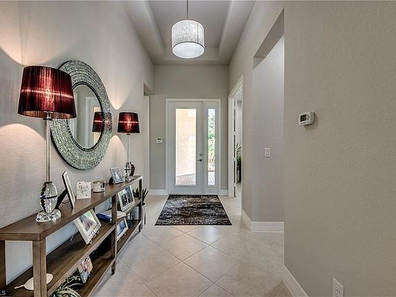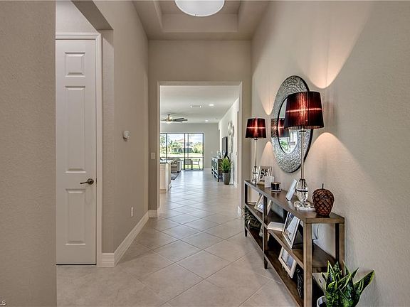 Do not miss your chance to own an amazing Cayman home from one of the top builders in SWFL. Florida sunsets will become your new favorite activity from your screened in oversized back lanai facing North West over looking the water. All the designer furnishings in this home are negotiable !! You will love the amazing slate grey over sized kitchen countertops, glass back splash paired tastefully with white soft close cabinetry and stainless steel appliances. Tile is laid diagonally through out the home and wet areas with soft plush carpet in the bedrooms! Master bedroom features tray ceilings, walk in closets and a gorgeous master bathroom with soaking tub and walk in shower. Marina Bay is located in the Treeline corridor with quick access and a short drive to I-75, FGCU, Florida Jet-Blue sports park (home to the Boston Red Sox training facility) and the Fort Myers airport. Marina bay has amazing amenities such as resort style pool, lap pool, kiddie water and play park, state of the art gym, indoor basketball and plenty of tennis and pickle ball courts for the avid players!! Call and schedule your showing today!!