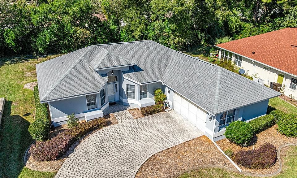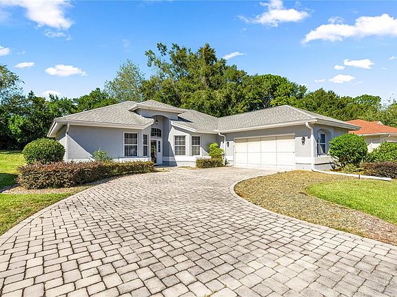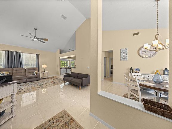 One or more photo(s) has been virtually staged. Welcome to The Preserve at Oak Run, where resort style living meets modern elegance and everyday comfort. This beautifully updated CAPRI model is perfectly positioned with no rear neighbors, offering privacy, charm, and a wide brick paver driveway leading to a side load 2 car garage that enhances its curb appeal. Step inside and experience a bright, open layout filled with natural light. Featuring cathedral ceilings, tile flooring throughout, fresh paint, and new blinds, the home feels crisp, inviting, and move in ready. The chef inspired kitchen showcases granite countertops, tile backsplash, upgraded cabinetry, recessed lighting, and a cozy breakfast nook ideal for your morning coffee. Every detail has been thoughtfully updated, blending comfort with modern design. Enjoy brand new stainless-steel appliances (2024), a whole-home water filtration system (2024), new washer and dryer, stylish lighting throughout, and a fully remodeled guest bath. The primary suite is your private retreat, featuring a walk in closet, soaking tub, separate shower, and a decorative glass block window that adds timeless charm. Relax and entertain in the fully enclosed lanai or on the oversized 28’x20’ screened patio, perfect for gatherings or a future spa or pool addition. Additional highlights include a home wide speaker system, garage screen doors, concrete curbing, ample attic storage, and a beautifully redone, low maintenance yard. With a roof and HVAC replaced in 2018, this home offers both style and peace of mind. Enjoy low maintenance living in Oak Run’s premier 55+ gated community, featuring six pools, five spas, an 18 hole golf course, clubhouse, restaurant, pickleball, tennis, dog park, and 24/7 Envera security. A perfect blend of luxury, comfort, and resort style amenities your Florida dream home awaits!