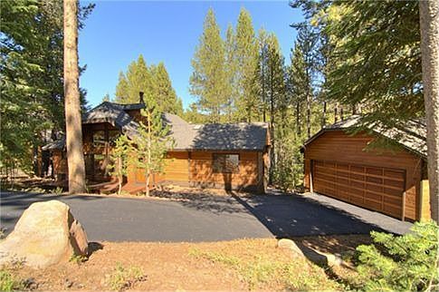 This solid cedar home is perched on a gentle hillside on a quiet street backing to common area forest. Open beam cathedral ceiling and floor to ceiling fireplace give this home dramatic appeal. This home was remodeled with clear hickory cabinetry, raised panel fir doors, custom wood blinds, corian solid surface and tile counters. Soak up the serenity on the large back deck and enjoy a quiet, forest view. Close to Tahoe Donner trails and Trout Creek Rec Center. This home is immaculate & shows beautifully!