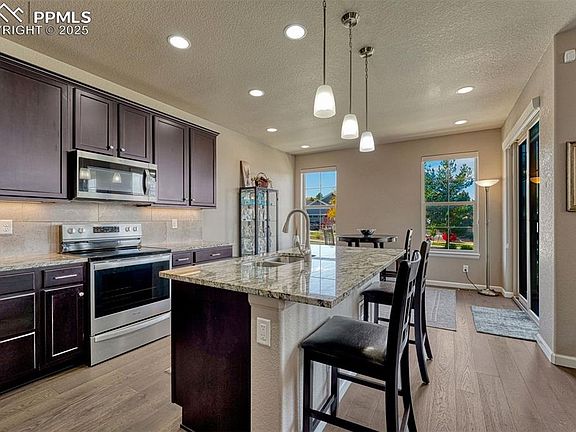 Step into effortless living with this beautifully maintained townhome, lived in only once and ready for its next chapter. Located just minutes from the heart of downtown Parker, this home blends convenience, comfort, and style in a quiet and welcoming community. The open-concept main floor is designed for modern living, featuring engineered hardwood and tile flooring throughout. The spacious living room showcases a stunning tile fireplace with a wood mantel and premium Hunter Douglas blinds, creating a warm and inviting atmosphere. The kitchen is a chef’s dream with 42” upper cabinets, granite countertops, stainless steel appliances, and under-cabinet lighting. It flows seamlessly into the dining area, where a walk-out leads to the private enclosed concrete deck complete with a remote-controlled awning, perfect for sunny Colorado afternoons. The main-floor primary suite is a true retreat, offering a spa-like en-suite bathroom with double rectangular under mount sinks, granite counters, a walk-in glass enclosed shower with shower seat, and an impressive walk-in closet. Also on the main level, you’ll find a dedicated laundry room with included washer and dryer, plus plenty of additional storage keeping everything within easy reach. A convenient half bath rounds out the main level. Upstairs, you'll find a versatile loft space ideal for a home office, media room, or game area along with an additional bedroom and bathroom, providing privacy and flexibility for guests. Enjoy the perfect balance of peaceful living and easy access to shopping, dining, and entertainment. This townhome checks every box. Don’t miss your opportunity to make it yours!