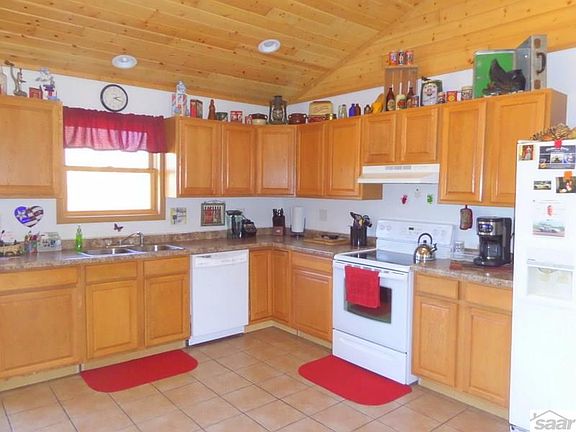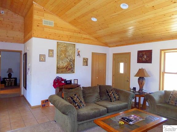 Great floor plan in a nice, private setting. This home features in-floor heating, a modern kitchen, and a tongue-in-groove vaulted living room ceiling. There are two full baths and nice separation between the bedrooms. The master bedroom has a huge walk-in closet and access to the private bath. For your outdoor activities, the site has nice setback from Minnesuing road and a lot of cleared land around the home. Also located on the property is a unique detached garage with 3 overhead doors and there is a small pond that attracts plenty of wildlife.