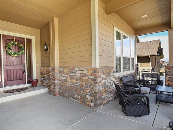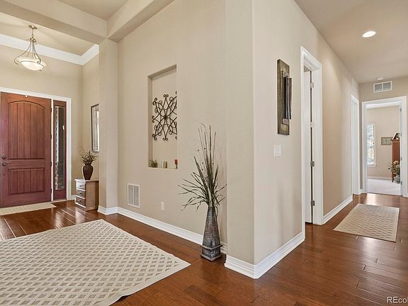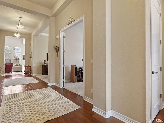 Popular location in the Highlands, Idyllwilde/Canterberry area. Very few ranch style homes available so come & get it! Four beds, five baths, finished basement & landscaping is done...yet you can still put your own personal touch in the home that you want. Only one owner with pride of ownership; move in ready. Enter onto the wonderful covered front porch & into the home on the beautiful hardwood floors. Guest bedroom has an attached bath with walk in shower at the front of the home. Formal dining & office with double doors off to your right. Enjoy the openness of the family room with a stone gas fireplace & vaulted ceiling. Kitchen has eat in area, island, tile floors, granite countertop, gas stove, staggered cabinets & huge walk in pantry. Head down the hall & on your right is the powder bath with closet space. Laundry with closet & sink at entrance from garage. Another guest bedroom with walk in closet & attached full bath. Step into the spacious master with vaulted ceiling, sitting room & walk in closet. Master bathroom is a five piece with tile flooring & granite counters. Finished basement has a wet bar with a mini fridge. Cozy family room with a gorgous gas fireplace. Bonus space with wood wall accent for table, game, exercise equipment or whatever you choose. Bedroom with a walk in closet. Bathroom has a giant walk in shower. Storage under stairs. Professional landscaping with sprinklers at front & back. Pavers patio. Three car attached garage with service door to yard. Two ac's, 2 furnaces & humidifier. HOA has a clubhouse, exercise equipment & pool. Minutes from downtown Parker, close to Castle Rock, the airport & E470 & only 35 minutes to downtown Denver. Perfect home in the best neighborhood with a mountain view from the back.
