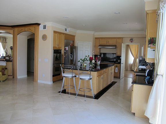 A spectacular, newer (1998), custom-built estate property north of Rinaldi in Granada Hills, with panoramic views of the San Fernando Valley. This house is situated in "Rancho Del Valle": a private gated community of only 11 houses. Quiet and peaceful but only minutes away from Rinaldi, 118, 5, 170, 14, and 405 freeways, as well as Trader Joes, Whole Foods, Target, Sprouts Farmers Market, etc. The house features 5 bedrooms and 4.5 bathrooms in just over 4,100 square feet, formal living (with a fireplace), dining, family (with a fireplace) rooms, a large kitchen, a bonus room, an office, two garages, laundry room, pantry, and several walk-in closets. A number of major upgrades in the past few years. Some of the highlights are black-and-white marble floors, white oak hardwood floors throughout, new tankless water heater (unlimited hot water), remodeled bathrooms, recessed lighting, new energy-efficient windows keep the house cool in the summer and warm in the winter. Dual-zone air conditioning. Downstairs: o Dramatic entry with marble flooring and a beautiful iron-and-onyx staircase. o Open floor plan kitchen with granite countertops, marble floors, stainless steel appliances (new gas range, new fridge, double oven, and all other appliances), pantry. o Formal living with custom built media center and a gas fireplace. o Formal dining room. o Step down family room with a gas fireplace and 20-ft ceilings. o 1.5 bathrooms downstairs plus separate laundry room with sink (new front-loading energy-efficient washer and dryer included). o Separate master bedroom with a full bathroom. o Two separate garages (2-car and 1-car). Upstairs: o Huge master bedroom with high ceilings and a wall of windows overlooking the San Fernando Valley. o Huge master bath with a separate shower, Jacuzzi, his-and-her sinks, a large walk-in closet, and views of the San Fernando Valley from the tub. Marble and tile throughout. o Large bonus room with alcoves overlooking living room and the entrance hallway. o Built-in office. o Three additional bedrooms with 2 full baths.