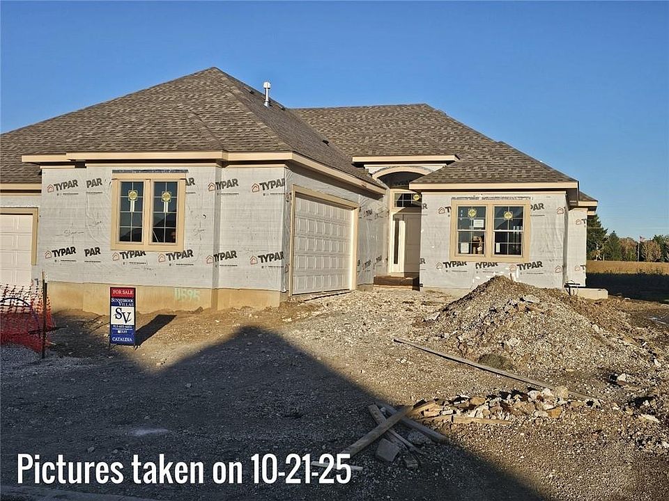 Highly sought-after Catalina Rev. 1,5 sty. plan by Crestwood Custom Homes! This one is on a level, cul-de-sac lot backing to the east with covered patio! Convenient location in Johnson Counties hottest maintenance provided neighborhood, the Villas of Sunnybrook East by Prime Development Land Co. Open floor plan unites the Great rm., kitchen & dining space. Centered fireplace in Greta rm. with built-ins on both sides & soaring 11 ft ceilings! Luxurious Primary suite w/no step entry into the large walk-in shower, free-standing tub & big walk-in closet. There is also a 2nd bdrm. or Den on the main floor. Custom, solid Birch cabinetry, quartz tops & extensive trim details. Finished lower-level includes 2 bdrms., 1 bath, spacious family/recreation area, walk-up wet bar & full bath. All stucco exterior, sprinkler system & an extensive menu of exterior maintenance services. Still time to make all of your interior decor selections!