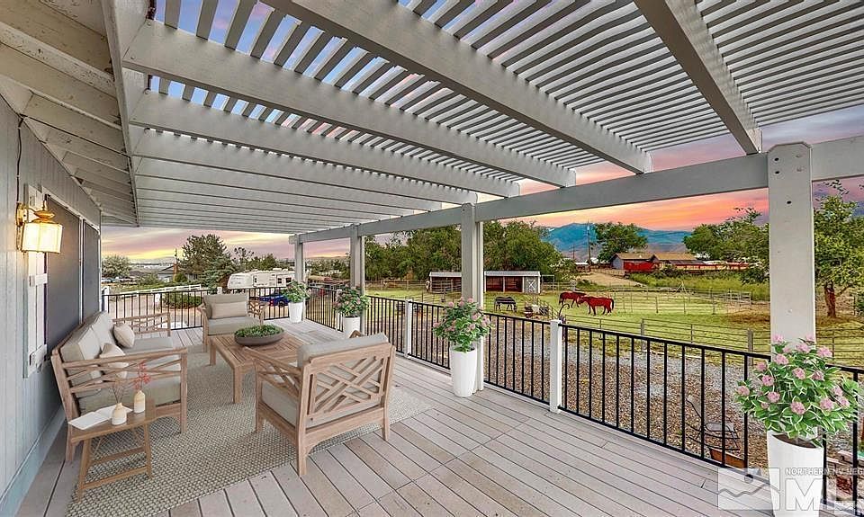 If you or anyone you know is interested in horse property, this is the one!!! Step into a beautiful designed home boasting 3 bedrooms and 3 bathrooms providing ample space for your living experience.The open floor plan creates a seamless flow between the living, dining, and kitchen areas, making it perfect for entertaining., The area is renown for its extensive network of riding trails for both horses and recreational vehicles. Additionally, imagine harvesting your own bounty of fresh produce right from your own orchard. Two corrals including 2 horse shelters and one large working pen. The house has a reverse osmosis at the kitchen sink and refrigerator. New laminate flooring throughout, all new double pane windows, and new pad and carpet were just installed in the bonus room. Washoe County has it listed as a 2 1/2 bath, but home has three full baths.