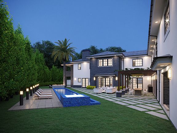 Traditional 2 story new construction with modern vibes. Soaring 21 ft plus ceilings at the formal entry and living room, complemented by an architectural floating curved stair case, bar, & fireplace. Spacious chef's style kitchen with two islands, plus catering kitchen with its own laundry. Master suite will take your breath away. His & Hers closets, His & Hers bathrooms, each with their own steam shower and soaking tubs. An additional 4 bedrooms upstairs. Home theater. Home office opens up to the living wall garden. Gym with sauna and steam shower. Crestron home automation system. Circular motor court with entry and exit gates. 3 car garage. Large grassy backyard with lap pool, spa, outdoor bar & BBQ.
