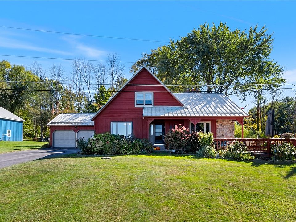 Located in the wonderful RESORT area of PORT BAY is this OUTSTANDING YEAR AROUND 4 bedroom, 2 bath WATERFRONT home situated on a 1 acre lot with 176' of LEVEL bayfront & new PERMANENT DOCK. PORT BAY has channel access to LAKE ONTARIO for access to anywhere! The property has beautiful UNOBSTRUCTED WATER VIEWS of the BAY & LAKE! This solid, well built & well maintained home with a full basement has new standing seam METAL ROOF (2021), ANDERSEN WINDOWS, FIREPLACE insert in family room, wood pegged hardwood flooring, enclosed porch, wrap around trex deck, and all recent appliances included. Two second floor bedrooms & two first floor bedrooms with one currently being used as an office. New PAVED doublewide driveway for ample parking for you and all your guests. There is even a RV 30 amp hook-up and two sheds included. The "park like" setting has a GORGEOUS YARD and stone pathway to the lovely gardens! Many updates throughout the home too numerous to mention. This location offers year around fun in ALL SEASONS and many local attractions just minutes away such as Port Bay Golf Course, Chimney Bluff's State Park, Sodus Point, Fair Haven, Wineries, Restaurants, nature trails, fishing & boating areas, & the country charm of many farm markets & local stands!