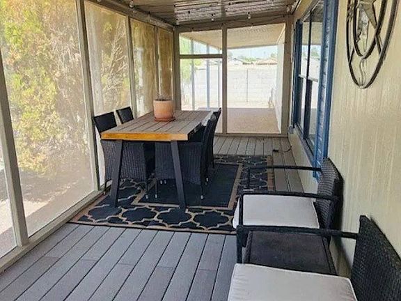 This large double wide two bedroom, two bath home is move in ready. Large open floor plan, all appliances convey. The floor plan is very welcoming; it is a must see. This home is occupied so please call for an appointment for tour. This home has a large carport with shed and cozy screened in front porch for relaxing on those on cool nights. The roof is approximately 8 years old, A/C approximately 11 years old. This 55+ retirement community is close to the Phoenix Coyotes hockey arena and Arizona Cardinals football stadium at the nearby Glendale Sports Complex. We are 45 minutes away from world class restaurants and entertainment in the greater Phoenix area. Golfers can improve their game at over 60 golf courses within a 25 mile radius. Senior outdoor enthusiasts can head north 30 minutes for a day of fishing and boating at Lake Pleasant or veer west and take in the scenic desert mountain views while hiking at the White Tank National Park.