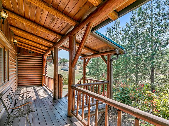 Rare opportunity in one of Ashland's most coveted neighborhoods! Just minutes outside the city, Corp Ranch Rd is a premier community of custom homes in the foothills of the Cascade-Siskiyou mountain range, offering privacy and sweeping views of the Rogue Valley and beyond. Blending rustic charm with modern convenience and endless potential, this log cabin-style home (originally built by a civil engineer) has been lovingly cared for by only two different families for over 40 years. An impressive log staircase and covered front porch lead to the spacious, open-concept living room, dining room, and kitchen with windows in every direction, including a broad south-facing bay window. Off the kitchen is an expansive back deck overlooking the property. 3 bedrooms and 2 full bathrooms provide comfortable living space, plus a full basement with HVAC with tons of versatility. The property is kept watered and protected with a 1300 gal cistern, TID irrigation, and 2 above-ground holding tanks.