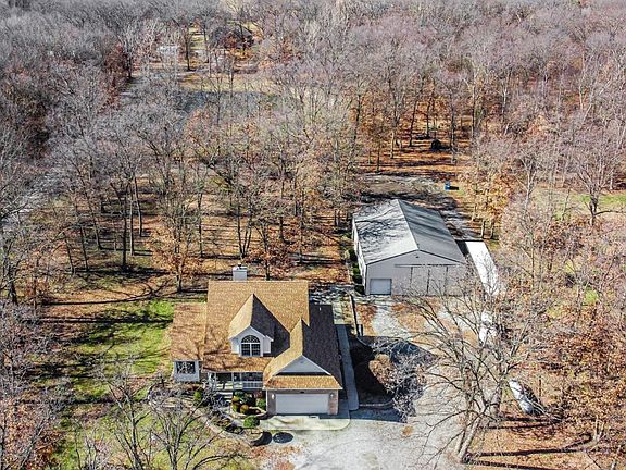Beautiful 1 1/2 Story Home with full Daylight Basement, Pole Barn, and Pond on 3.35 Acres. Yes, this home has it all. Gorgeous Hardwood flooring in front Foyer and Formal Dining Room. Striking Living Room with a floor-to-ceiling Fireplace and an abundance of windows to let the sunshine in. Spacious eat-in Kitchen with a built-in desk nook and walk out deck. Primary Bedroom has an ensuite whirlpool tub, stand up shower and walk in closet. Upper level has 2 Bedrooms and its own full Bath. Partially finished Basement with a 2nd Fireplace, Den/Rec Room and another full Bath. Lots of room for storage or additional space to customize and finish. Outdoors is like a nature preserve with a full set of woods and your own stocked pond. Expansive Pole Barn (42' x 54' x 16') with concrete floor, electric, and extra built-in storage garage. (Great for Boats, RV or Big Rig parking). Many upgrades including new Roof 2023 and New Central Air 2022. Pella Windows throughout. Schedule your showing today.