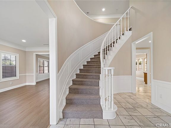 This home comes with paid-off solar panels (30 in total), ensuring energy efficiency. The 3-car garage features new epoxy flooring. Outside, the backyard is perfect for entertaining with a pool and a large viewing deck/balcony. Additional features include plantation shutters, cathedral ceilings, crown molding, granite counters, recessed lighting, new interior paint, new luxury vinyl downstairs, new carpet upstairs, and newer heating and AC.
