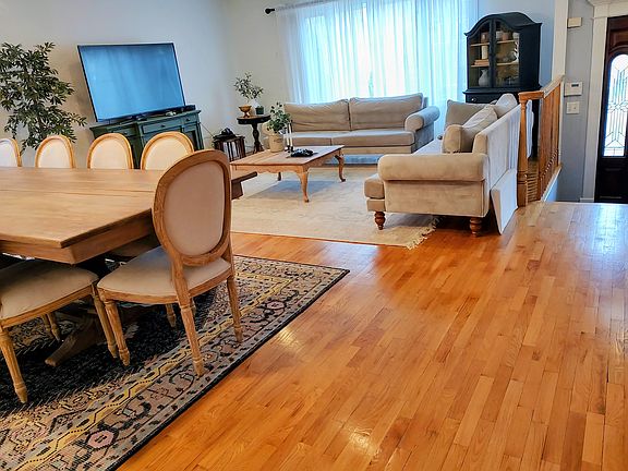 Wonderful 3-bedroom and 3.5 bathroom half duplex in a great location in Elmwood Park. First floor offers: a large living room/dining room combo, an eat-in kitchen with granite countertops, stainless steel appliances, and cherry wood cabinets, a pantry, a half bathroom, and a sliding door with direct access to the patio. The second floor contains a large master bedroom with a vaulted ceiling, a walk-in closet and master bathroom, plus 2 other generous bedrooms with wall-to-wall closets and a full bathroom. The ground level is finished with a family room, recreation room, full bathroom, and access to the garage.