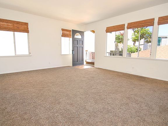 Rear Upper one bedroom unit on a walkstreet steps from the beach. Rear alley stairway provides private access to your balcony landing. This is a large one bedroom unit above three car garage. Stand alone unit with no common walls. Parking for one small car in your covered garage using alley access. Kitchen appliances include a newly installed double oven range, hood and microwave. Recently installed inside stackable washer dryer. Bedroom has hardwood floors. Utilities such as water, electricity, gas and trash collection included. No cable nor WIFI included in rent. This is a non-smoking, no pets property. One car covered garage. Dimensions for garage are 18 feet deep 6 feet 10 inches wide with a manually operated garage door.