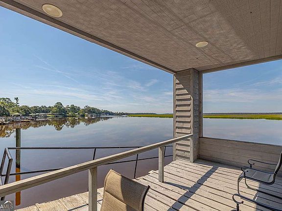 Nestled on a rare double lot along the deep waters of the Little Satilla River, this stunning property offers an exceptional waterfront lifestyle complete with a private boat house and boat lift. The primary home features 3600 sqft with 4 bedrooms and 4.5 baths all with a charming stucco exterior, welcoming front porch, and a thoughtfully designed interior with LVP flooring throughout. Enter into a spacious foyer that flows into the home. A chef's kitchen with a massive island, stainless steel appliances, a butler's pantry, that seamlessly adjoins the dining area. The main level also includes a half bath, laundry room with cabinetry, and a vaulted-ceiling living room complete with a gas limestone fireplace, and bedroom suite boasting a walk-in closet and large tiled shower with double sinks. Upstairs, two guest bedrooms provide ample space-one featuring a full sauna-while the expansive primary suite offers vaulted ceilings, a cozy sitting area with a fireplace, private porch access, a huge walk-in closet with step-down storage, and dual ensuite bathrooms-one with a soaking tub and the other with a tiled shower. Step outside to enjoy covered and uncovered porches that overlook breathtaking river views. The uncovered porch includes a built-in smoker, perfect for outdoor entertaining, while the fenced backyard adds to the picturesque overall of the home. Additional features include a two-car garage with a large storage room and multiple climate-controlled storage areas throughout the property. The fully equipped 838 sqft boat house doubles as a guest retreat with a full kitchen, half bath, living room, LVP flooring, bedroom, and full bath. Offering some of the best fishing around and true serenity on the water, this extraordinary property has to be seen to be truly appreciated.