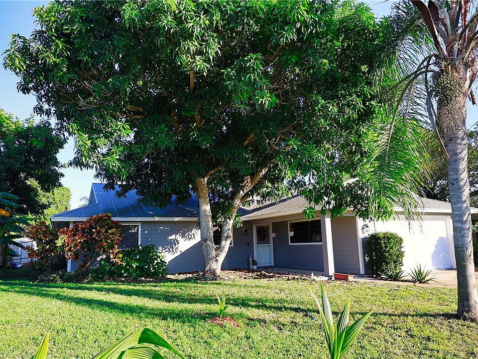 Charming 3/2 pool home featuring a durable metal roof and a desirable split-bedroom layout. Enjoy a spacious kitchen with stainless steel appliances, granite countertops, newer cabinetry, and stunning tile flooring. The home offers cozy living areas with a fireplace and dark wood plank flooring. A versatile second-story office or bonus room adds flexibility. Step outside to a private pool, ideal for relaxing or entertaining. Conveniently located just minutes from beaches, shopping, restaurants, and more. rmszappr&sub2err