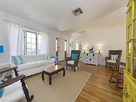 A light, bright and casually inspired beach cottage in the heart of Olde Naples. Close to downtown, beaches and shopping. Primary bedroom features a queen bed, flat-screen TV and ensuite bathroom with marble countertop. 2nd guest room offers another queen bed. flat-screen TV & guest bath. A powder room and a third bedroom offers 1 twin bed and walks onto the large lanai. Home features a dining/living area, galley kitchen, and separate TV/sun room which all open up to the lanai. Kitchen features quartz counters, glass tile backsplash, all top-of-the-line appliances and white shaker cabinets.