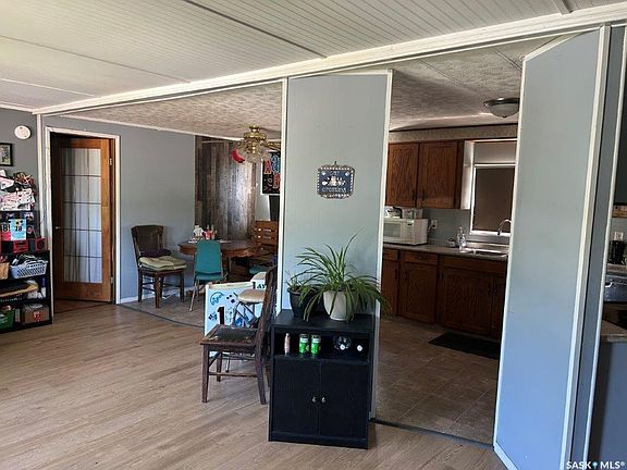 1588 sqft mobile home built in 1978 located on a 8125 sqft lot in Eatonia. Front entrance opens to a living room that opens to kitchen and dining room area. 2 bedrooms at one end of the mobile with a 4-piece bath, master bedroom has a 3-piece ensuite. Addition at the back of the mobile has a bedroom, games room and porch with storage. Features: 4 bedrooms, 2 bathrooms, good rental property with good renters. 16' x 20' deck, newer furnace, hot water tank is 1 year old and metal room. Shed is included. call to book your showing today!