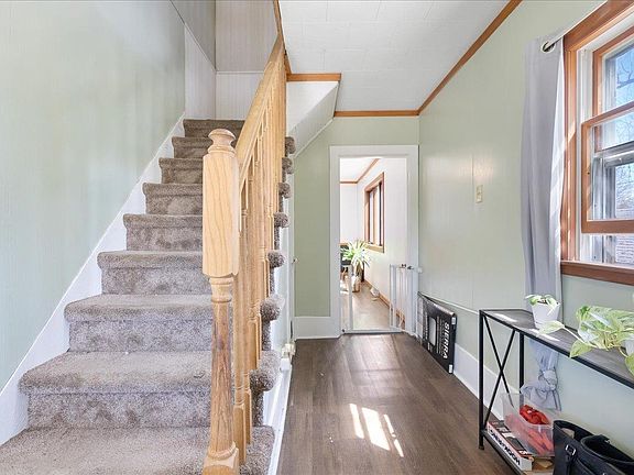 Well maintained 2 story home with oversized double stall garage located near center of town. This home has been updated on exterior as well as interior starting with the brand new front porch area plus brand new roof and when you enter the home you will be greeted with new carpet, paint and interior finishes throughout starting with the large living room off of the dining area separate from the large kitchen with freshly updated cabinets, countertops and LVP flooring. The main level also features a newly remodeled bathroom with new flooring, paint, and shower/tub surround. Located upstairs are 3 bedrooms with a master bedroom and bathroom. The backyard is private with a deep lot with surrounding trees with plenty of space to stretch out and entertain. Don't miss out on this hard to find move-in ready home.