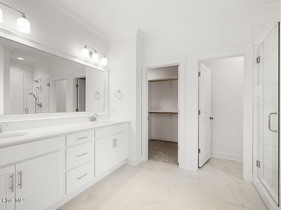 The first-floor primary suite is a private retreat with a spa-inspired bathroom featuring dual vanities and a spacious walk-in closet. Two additional bedrooms and a full bathroom are also located on the main level. Upstairs, a fourth bedroom and full bathroom provide a flexible space for guests, family, or a home office.