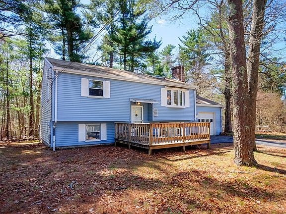Great Marshfield raised ranch on a corner lot abutting conservation area on two sides and priced to sell!!. The classic floor plan includes a kitchen and living room open to one another with beams, skylights and vaulted ceilings. Two ample, closeted bedrooms, a central hall w/ linen & coat closets and a full bath complete the upstairs. In the lower level is another bedroom w/ berber carpeting and two closets, a family room w/ fireplace and a large bonus room with storage closet and rear walk out to the fenced back yard. With a little work, this will be a fabulous home. Extra features include a large utility room w/ newer furnace & oil tank and laundry hookups and one car attached garage. First showings are at open house, Sunday 4/27 11am until noon, please stop by!