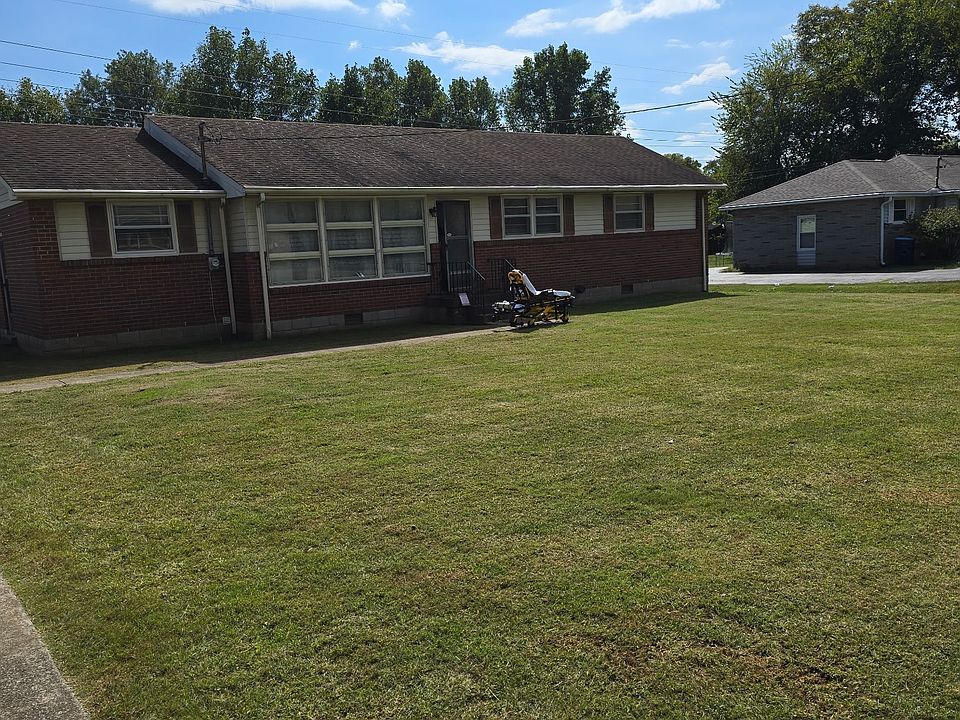 All brick 3br home, hardwood floors under carpet, attached garage converted to laundry/ playroom. Covered 2 car carport and detached 2 car garage. Near schools. Great home,