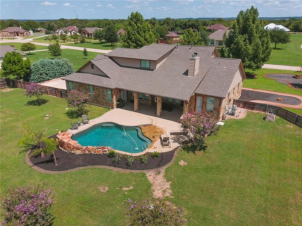 I am BACK and I am even BETTER! Meticulously landscaped Christopher David custom home on a corner lot in one of Bastrop's most sought after subdivisions. This home offers amble outdoor living space complimented by a beautifully designed home. Flexible floor plan with formal dining, separate office and upstairs suite. Open living plan features high ceilings, large windows and a stunning view of the backyard. Large rear covered patio with a fireplace. Pool features a shelf (beach) entry and waterfall. Practical with a well for outdoor use and Aqua water for inside. Water purification system. This house is ready to become your home.