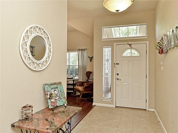 Welcome to 116 Barn Owl Loop, a beautifully upgraded single-story home located in the sought-after Summerlyn subdivision within North Leander ISD. This bright and welcoming residence boasts an open floor plan designed for both functionality and style. The formal dining room, enhanced with chair rail detailing and designer paint, offers flexibility to serve as a home office, study, or creative space. The spacious kitchen is a chef's dream, featuring granite countertops, tumbled marble backsplash, maple cabinetry, a stainless undermount sink with Moen Motionsense faucet, a breakfast bar, and both recessed and under-cabinet lighting perfect for daily living and entertaining alike. The kitchen seamlessly flows into a generous living area highlighted by a cozy corner fireplace and expansive windows overlooking the private backyard. Beautiful 5-inch maple hardwood flooring runs throughout the family room, dining room, and primary suite, elevating the home's charm and warmth. The primary suite is a peaceful retreat with its own ensuite bath, including dual vanities, a soaking tub, separate shower, and a large walk-in closet. A smart split layout provides privacy, with two additional bedrooms and a full hall bath located on the opposite side of the home. Step outside to the extended covered patio and enjoy a fully fenced backyard ideal for play, pets, or quiet relaxation. Additional perks include a home security system, raised attic storage, and an included refrigerator for added convenience. With thoughtful upgrades throughout and a location that combines community charm with everyday convenience, this home is ready for a new family to call it their own. Don't miss your chance schedule a tour today!
