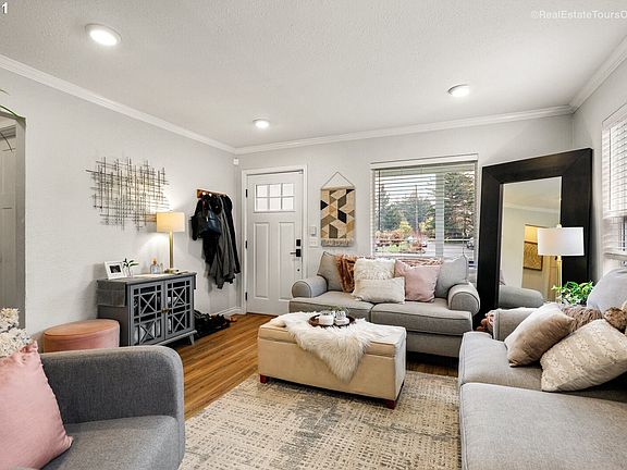 Remodeled bungalow from top to bottom in great Wood Village neighborhood! Close to shopping, Edgefield, freeway access. Every surface remodeled! Updated fiber cement siding, updated roof, new shed, detached garage. Beautiful luxury vinyl flooring throughout. Crown molding, period charm. Updated kitchen w/ granite, stainless appliances. Updated electrical, plumbing, tankless water heater. Upstairs Master bedroom/loft. Gorgeous outdoor covered living area, garden, huge yard. This will sell fast!